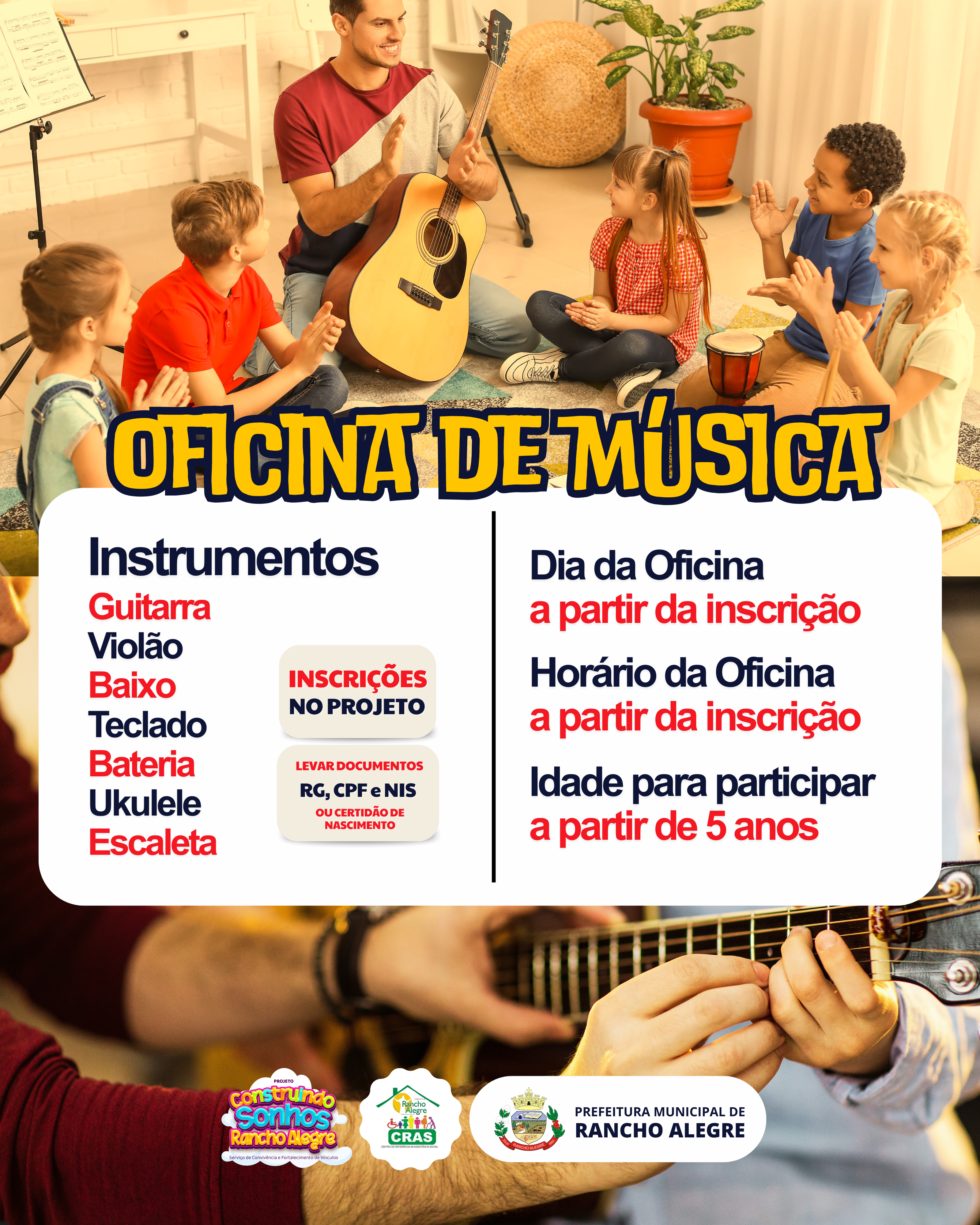 PROJETO CONSTRUINDO SONHOS OFERECE OFICINA DE MÚSICA