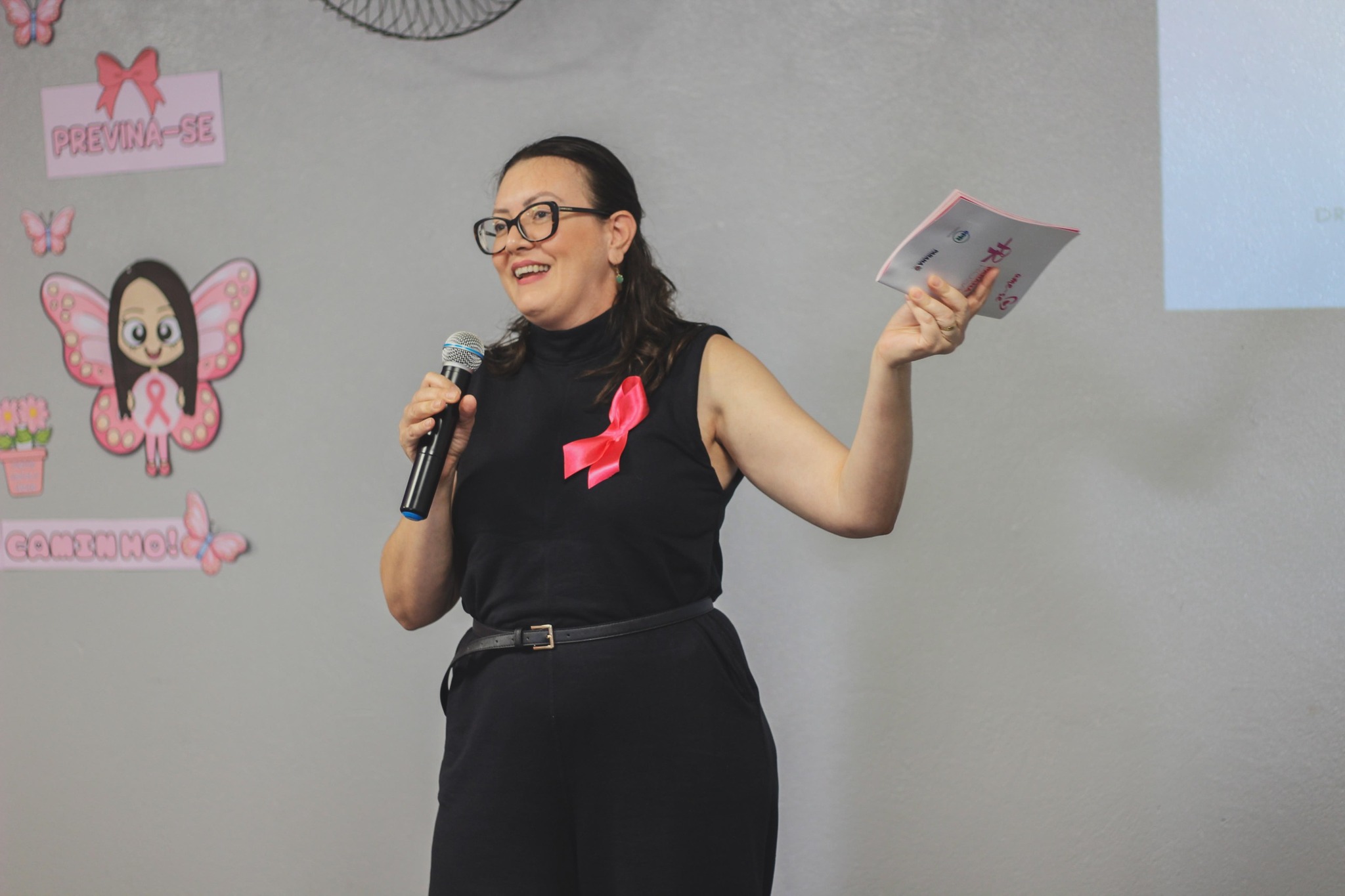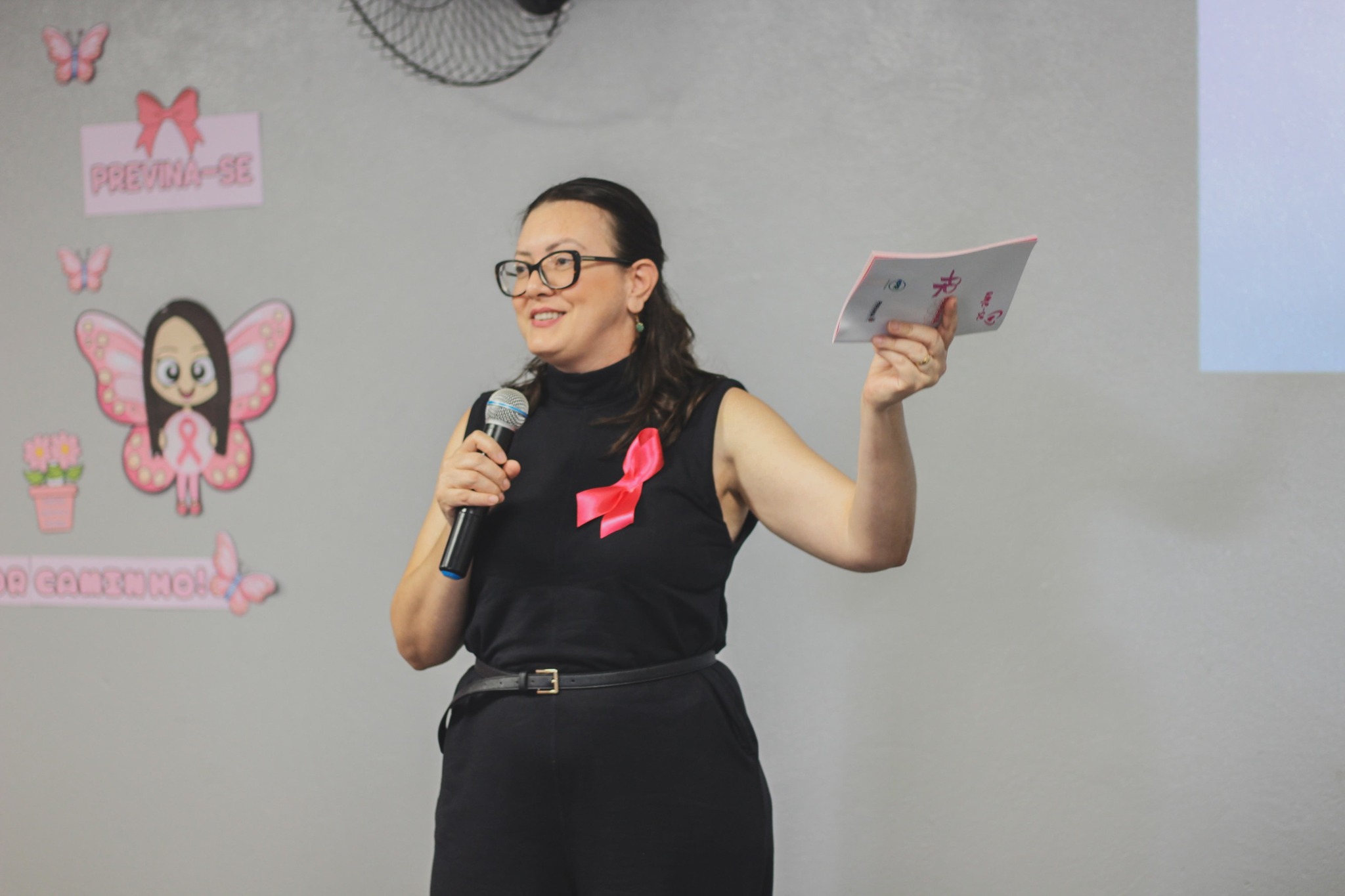 Durante a palestra, foram abordados temas importantes sobre prevenção, diagnóstico precoce e autocuidado, reforçando a importância da informação e do acompanhamento regular para a qualidade de vida das mulheres.